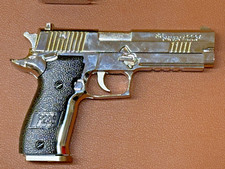 This is a collection of every model that Alloy Army makes in the 1:2 scale size. I have dubbed it the “One of everything collection” Here is the breakdown 4 P226 Sig Sauers Gold, Black, Gun metal, and Silver 4 QSZ92 pistol gun model by Norinco aka Type 92 Gold, Black, Gun metal, and Silver 3 Heckler…